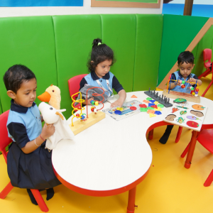 We welcome children aged 1.5 years to 6 years, including toddlers, nursery, LKG, and UKG levels. We also offer a toddler transition program and daycare facility for working parents.